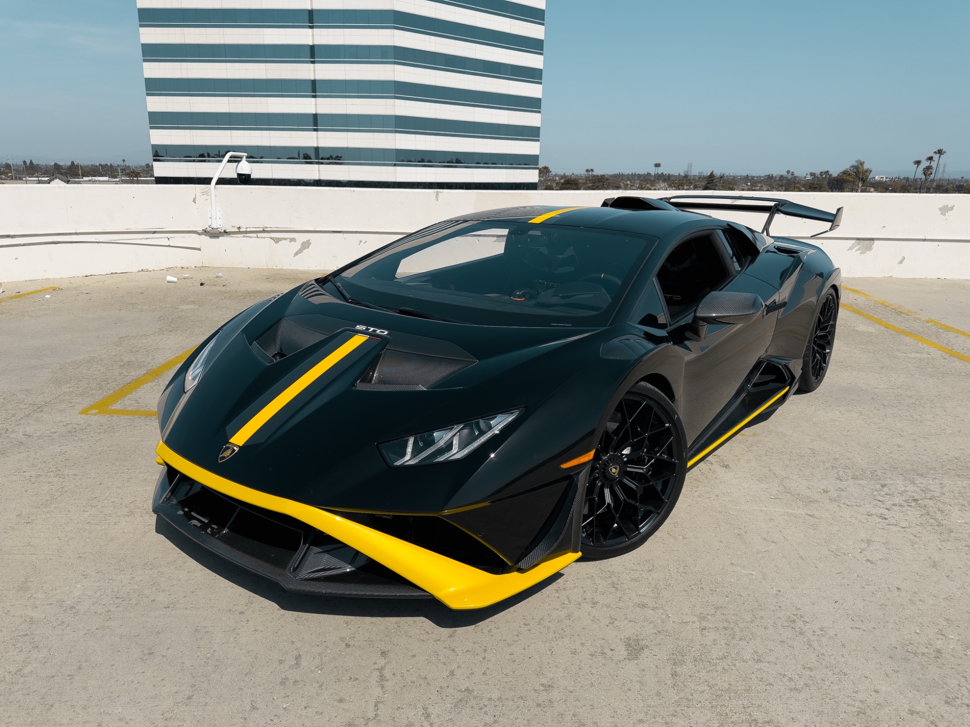 From Beverly Hills to Malibu's coastal highways, the Huracan STO Black commands absolute attention with its Super Trofeo Omologata heritage clearly visible in every aerodynamic detail and race-inspired interior element.