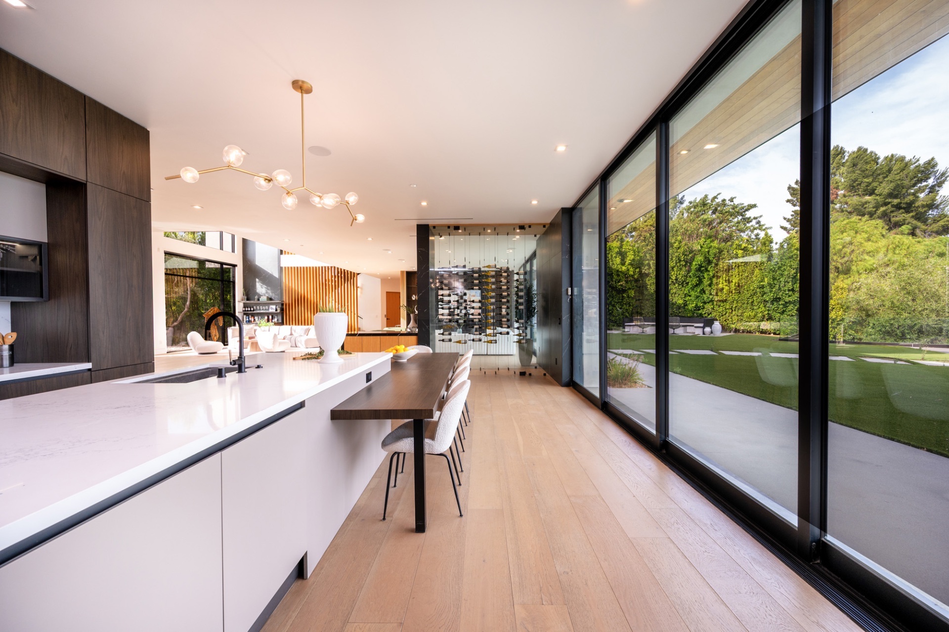 The estate's elevated position captures breathtaking panoramic views of canyon vistas and the glittering Los Angeles skyline, creating an ever-changing backdrop for sophisticated living. From the chef's kitchen equipped with world-class appliances to the resort-style outdoor oasis complete with sparkling pool and spa, every element has been carefully curated for discerning guests who demand excellence. With dedicated spaces including a state-of-the-art home theater, fully equipped gym, and executive office, Meadowview Estate represents the pinnacle of luxury Southern California living.